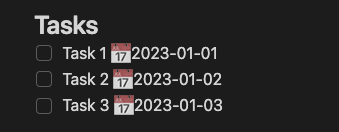 2. Task I create a list of tasks I need to achieve my goals using the Tasks plugin. The tasks plugin allows me to get reminders on my daily note or dashboard of tasks I must complete moving closer to my goals.