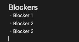 3. Blockers I have a section in my goal notes to list the blockers that are stopping me from completing my goals. I try to unblock it if possible, but sometimes the goal is unimportant, so I set it to a "Later" status.